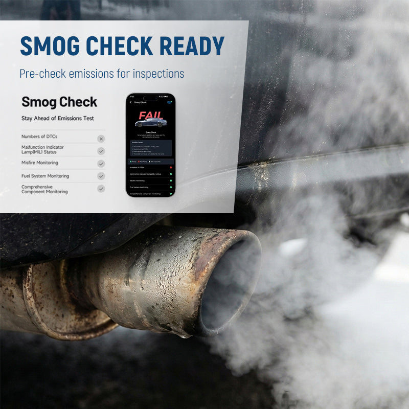 PREINSPECCIÓN DE EMISIONES: ahorre tiempo y dinero comprobando el estado de las emisiones de su vehículo antes de la inspección oficial. La función de comprobación de smog le ayuda a identificar y solucionar posibles problemas de forma temprana para garantizar que apruebe la prueba.